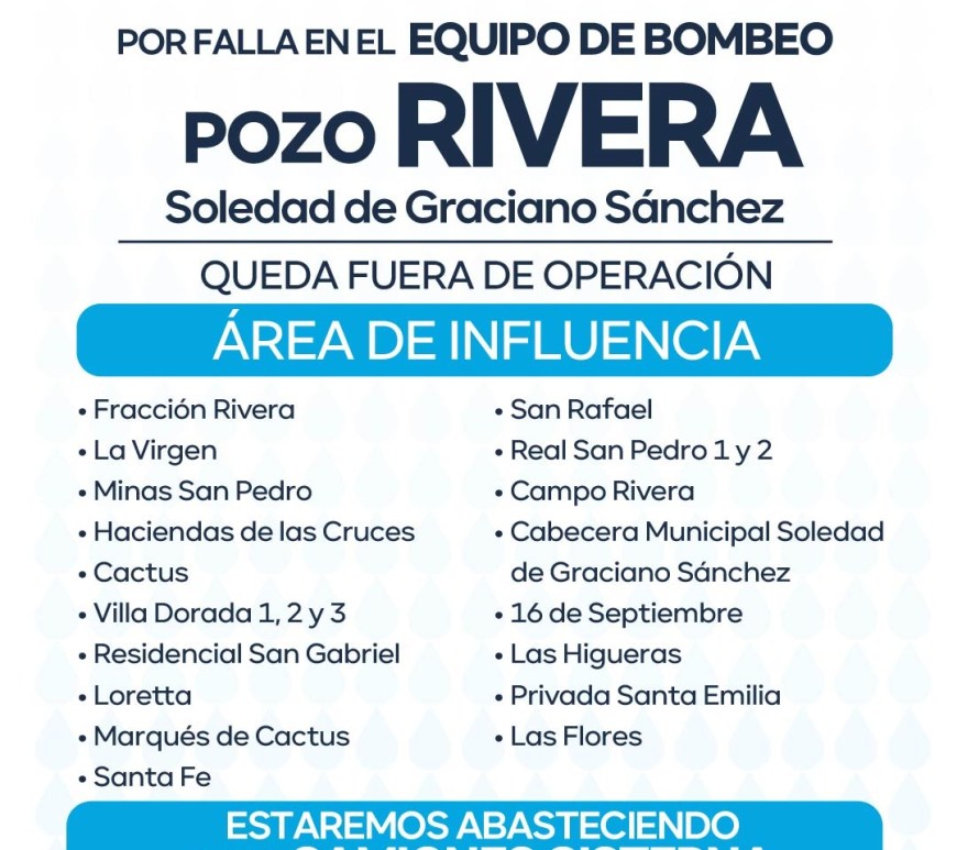 Interapas trabaja para restablecer el funcionamiento del pozo Rivera en Soledad de Graciano Sánchez