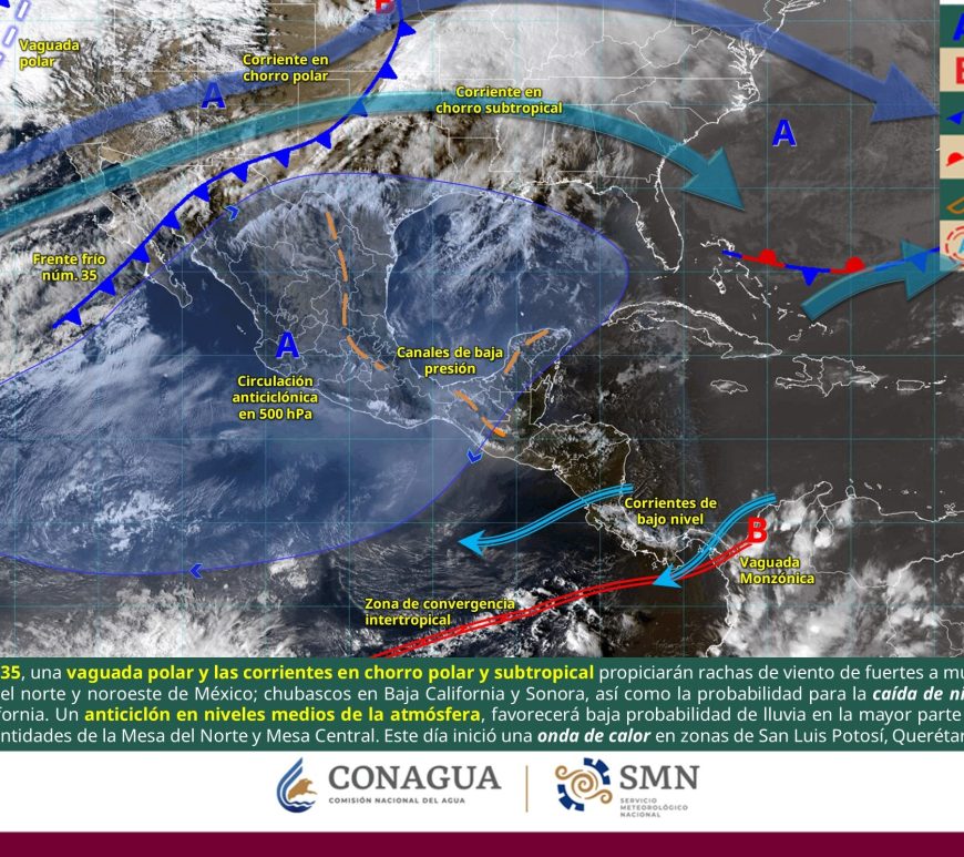 Cielo parcialmente nublado a medio nublado. Por la mañana, ambiente fresco a frío en la región y muy frío a gélido con heladas en zonas serranas de Chihuahua y Durango. Durante la tarde, ambiente templado, así como cálido a caluroso. Asimismo, prevalecerá onda de calor en San Luis Potosí (centro). Viento de dirección variable de 50 a 60 km/h con rachas de 70 a 90 km/h en … Continúa leyendo Pronóstico Meteorológico