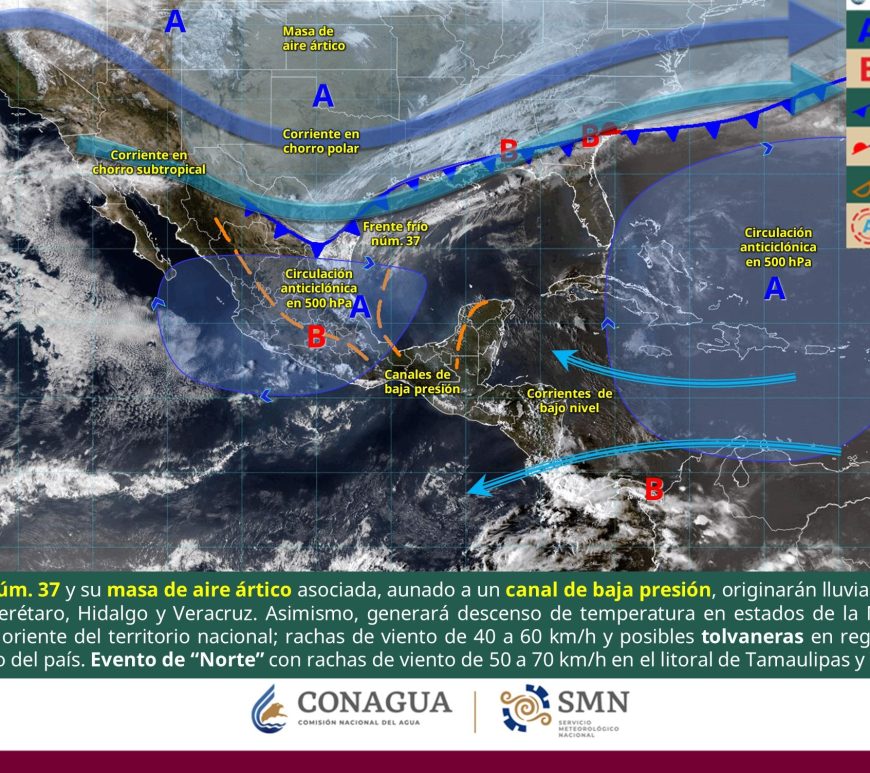 Cielo nublado a medio nublado durante el día, con lluvias puntuales fuertes en San Luis Potosí (Huasteca), mismas que podrían generar encharcamientos, crecida de ríos, deslaves e inundaciones. Así como lluvias aisladas en Nuevo León, Zacatecas y Aguascalientes. Ambiente fresco la mayor parte del día en gran parte de la región. Viento del este y noreste de 20 a 30 km/h con rachas de 40 … Continúa leyendo Pronóstico Meteorológico
