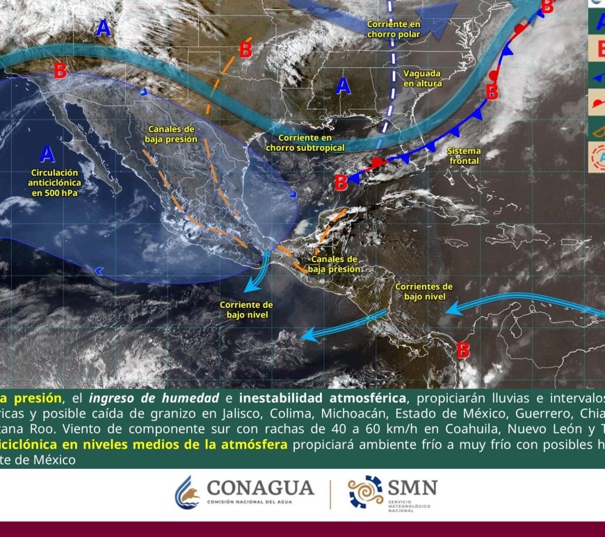 Cielo medio nublado a nublado durante el día con probabilidad de lluvias aisladas y descargas eléctricas en Chihuahua, Durango y Zacatecas. Cielo parcialmente nublado y sin lluvia en el resto de la región. Por la mañana, ambiente frío a fresco, así como muy frío en zonas serranas de Chihuahua, Durango. Durante la tarde, ambiente cálido a caluroso, prevaleciendo la onda de calor en Durango (oeste). Viento de componente sur … Continúa leyendo Pronóstico Meteorológico