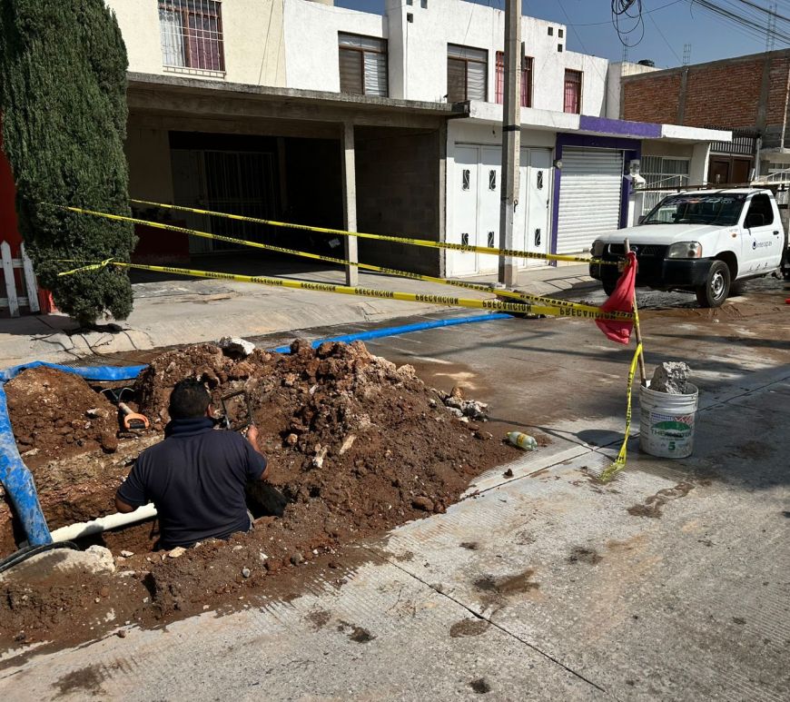 Interapas interviene fuga de gran tamaño en calle Martínez de la Vega, colonia Simón Díaz