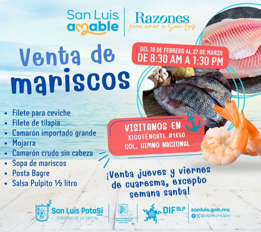 «Amar a San Luis también es apoyar a sus familias, fortalecer su economía y promover hábitos saludables»: Estela Arriaga, Presidenta DIF Capitalino A partir del 18 de febrero, los jueves y viernes de 8:30 a 15:30 horas en Xicoténcatl 1650, col. Himno Nacional El Sistema Municipal DIF de San Luis Potosí invita a las familias potosinas a aprovechar la venta de productos del mar a … Continúa leyendo DIF Municipal impulsará venta de productos del mar en Semana Santa para apoyar la economía familiar