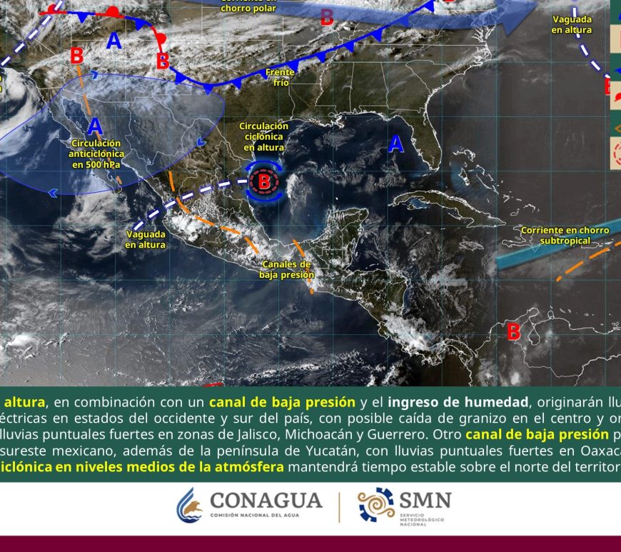 Cielo medio nublado, con lluvias aisladas en Chihuahua, Durango, Aguascalientes, San Luis Potosí y Zacatecas. Por la mañana, ambiente fresco a frío con posibles heladas en zonas altas de Coahuila, Nuevo León, San Luis Potosí y Aguascalientes, así como muy frío con posibles heladas en zonas serranas de Chihuahua, Durango y Zacatecas. Durante la tarde, ambiente cálido en Coahuila, Nuevo León, Zacatecas (sur) y San … Continúa leyendo Pronóstico Meteorológico