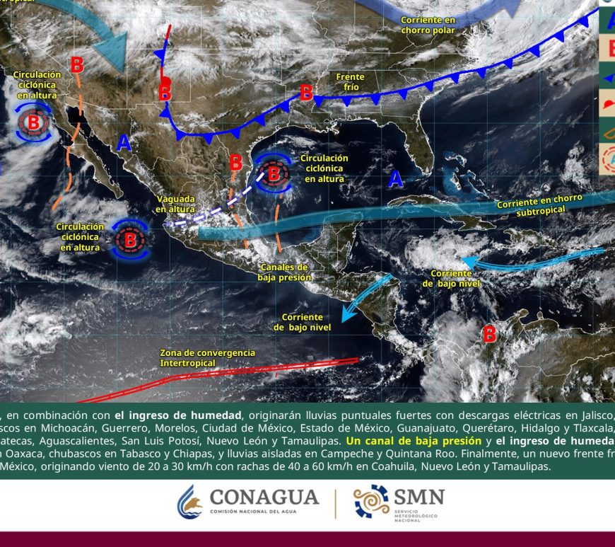 Cielo medio nublado, con lluvias aisladas en San Luis Potosí, sin lluvia en Chihuahua, Coahuila, Nuevo León, Durango, Aguascalientes y Zacatecas. Por la mañana, ambiente fresco a frío con posibles heladas en zonas altas de Nuevo León, San Luis Potosí y Aguascalientes, así como muy frío con posibles heladas en zonas serranas de Chihuahua, Durango y Zacatecas. Durante la tarde, ambiente cálido en Coahuila (norte), … Continúa leyendo Pronóstico Meteorológico