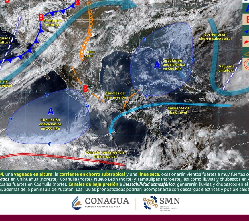 Cielo medio nublado a nublado en el transcurso del día. Lluvias puntuales fuertes en Coahuila (norte); las cuales podrían ocasionar encharcamientos, inundaciones y deslaves, e incremento en los niveles de ríos y arroyos. Chubascos en Chihuahua y Nuevo León, además de lluvias aisladas en Durango, Zacatecas y San Luis Potosí. Todas las lluvias con descargas eléctricas y posible caída de granizo. Por la mañana, ambiente fresco … Continúa leyendo Pronóstico Meteorológico