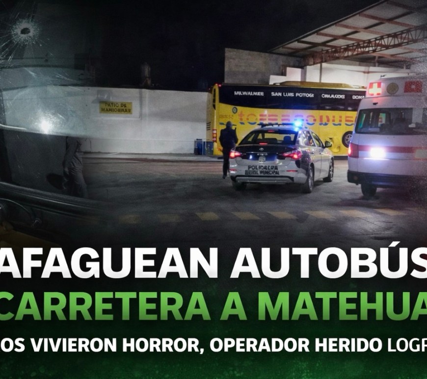 Ataque armado en plena carretera deja al operador herido; pese a ello, logró huir y salvar a los pasajeros. Continúa leyendo RAFAGUEAN AUTOBÚS EN CARRETERA A MATEHUALA: OPERADOR HERIDO LOGRA ESCAPAR 🚨