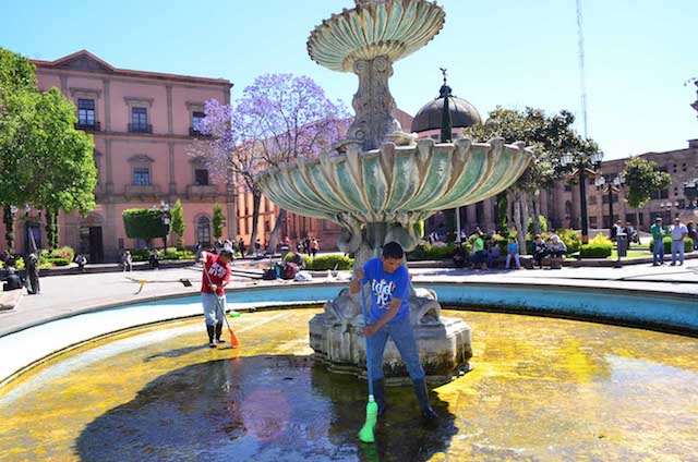 Entre las labores que se resaltan está la limpieza de las fuentes de las plazas del Carmen y Aranzazú, que realizaron en pasados días, y continuarán con el mantenimiento por turno a las faltantes; la limpieza de los jardines también se realiza diariamente para mantener la imagen del primer cuadro de la ciudad en condiciones óptimas para los capitalinos y visitantes sobre todo en los meses de julio y agosto.