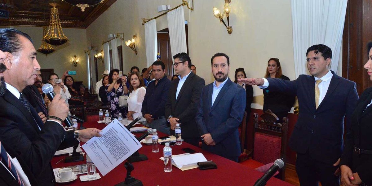Este viernes el Cabildo capitalino nombró a Rodrigo Joaquín Lecourtois López como contralor Interno, por lo que el presidente municipal interino Juan Carlos Torres Cedillo, le tomó la protesta de ley al nuevo funcionario.