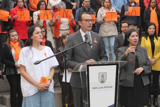 Acompañado por parte de su gabinete, regidores y personal municipal que potaron el listón naranja en solidaridad con este tema, el edil detalló que en San Luis Potosí 6 de cada diez mujeres han sido víctimas de violencia a lo largo de su vida, así como 4 de cada 10 mujeres han sufrido violencia física por parte de su pareja; al cierre del primer trimestre del año, la entidad se colocó como uno de los primeros cinco lugares a nivel nacional con violencia física contra las mujeres.