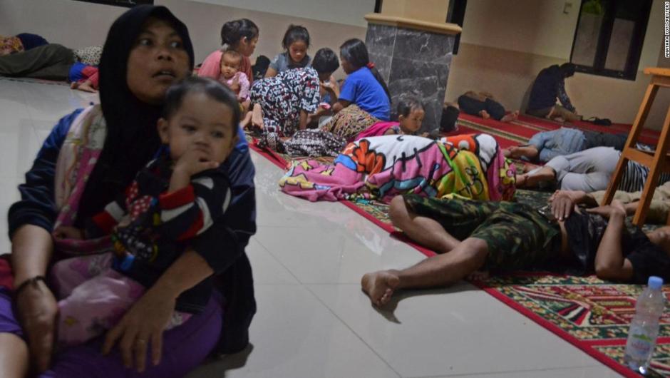 Algunos residentes huyeron a refugios después del tsunami.