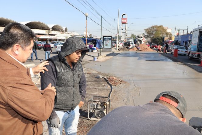 El director de obras públicas Marco Antonio Uribe Ávila inspeccionó las obras que se realizan en la calle Coronel Romero, frente al mercado San Luis 400, para verificar que cumpla con los requerimientos necesarios que marcan las normas.