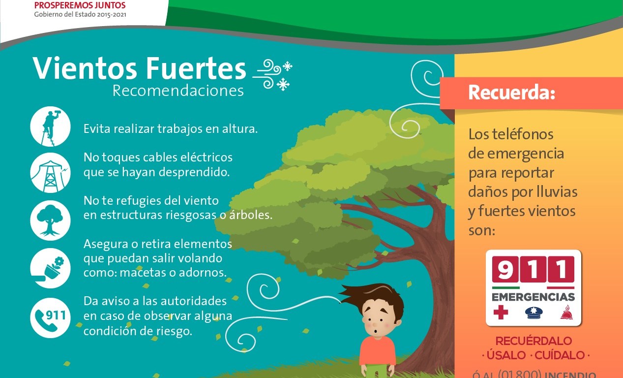 Pidió a la ciudadanía no realizar trabajos en alturas, quitar objetos de balcones y techos que pudieran salir volando y causar daños, así como evitar estar debajo de árboles o de estructuras frágiles.