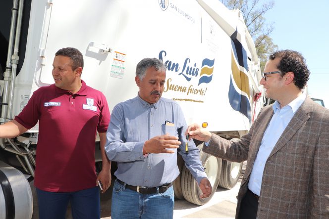 El edil entregó personalmente las llaves de los camiones a los titulares de las delegaciones potosinas, donde encendieron por primera vez los camiones que beneficiarán de gran forma al municipio en materia de ecología y de recolección de basura en todo el municipio ayudando a tener una ciudad más limpia.