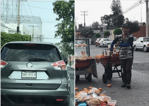 Un usuario de Facebook exhibió el comportamiento de una persona que presuntamente tiró con su camioneta una carretilla de mangos, propiedad de unos jóvenes que se dedican al comercio ambulante de esa fruta en la capital de San Luis Potosí.