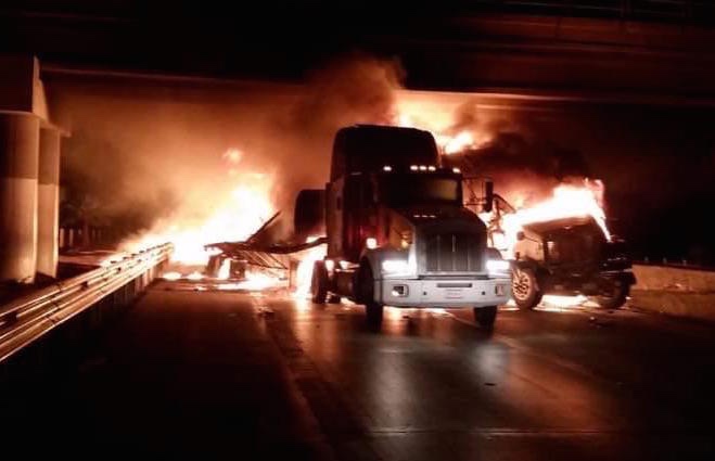 Las unidades afectadas eran: una de la marca Kenworth, color blanco, placas 02AK6V, acoplado a una caja cargada con cinco toneladas de chocolate; otro era un tracto camión Freightliner, color azul, placas 46AJ7E, acoplado a caja cargada con raks; el tercero fue un tracto camión de la marca Kenworth, color blanco, placa 397EW5, acoplado a plataforma Cargado con 2 rollos de acero; el cuarto tráiler quedó completamente calcinado y no ha sido identificado.