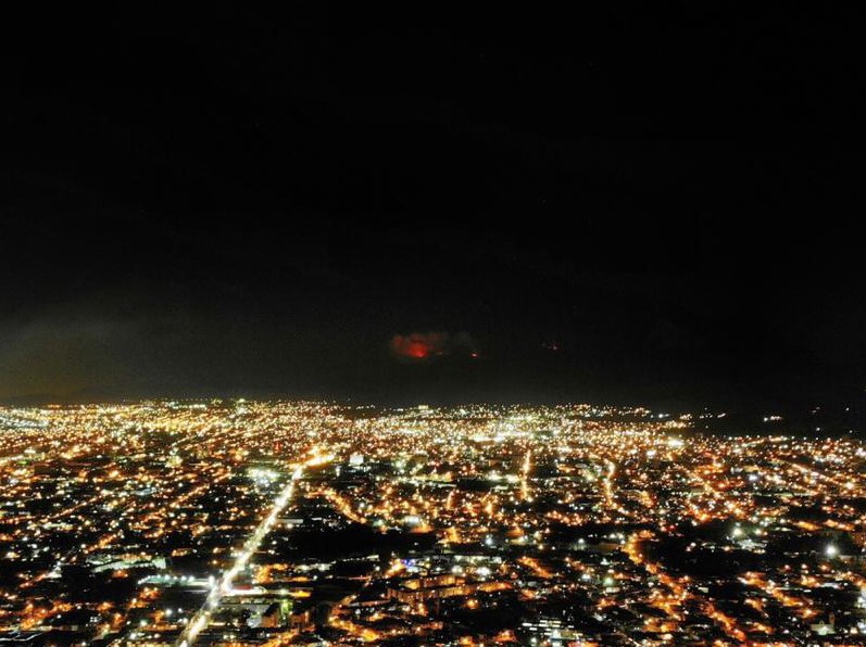 Durante el anochecer se logró ver una gran columna de humo, mientras que de noche se aprecie el rojo de las llamas.