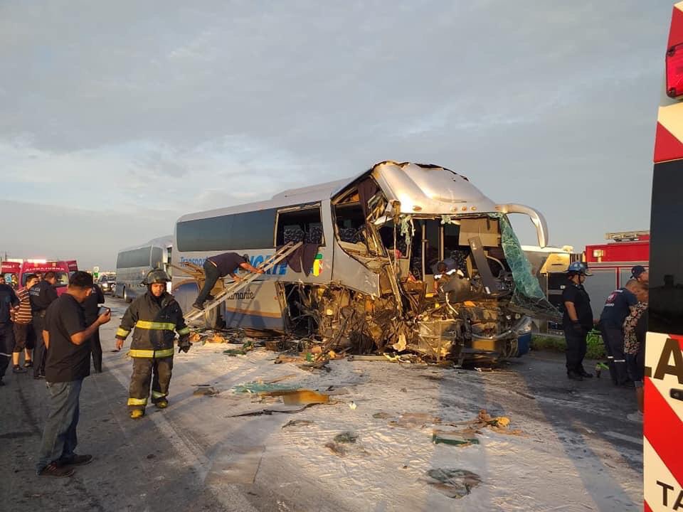 Un total de 13 pasajeros resultaron lesionados al impactarse el camión en que viajaban contra un tractocamión. Siete personas están delicadas.