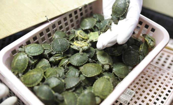 Cinco mil 255 tortugas, de la especie de orejas rojas, fueron encontradas en cajas como parte del equipaje de dos ciudadanos indios, y algunas murieron durante el viaje, ya que llegaron en un vuelo procedente de China, indicó el Departamento de Aduanas de Malasia.