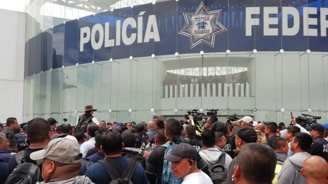 Esta mañana, integrantes de la Policía Federal (PF) adscritos al área de Fuerzas Federales protestaron afuera de las oficinas centrales de la corporación, ubicadas en la alcaldía de Iztapalapa, así como con bloqueos viales por inconformidades con su transferencia a la Guardia Nacional.
