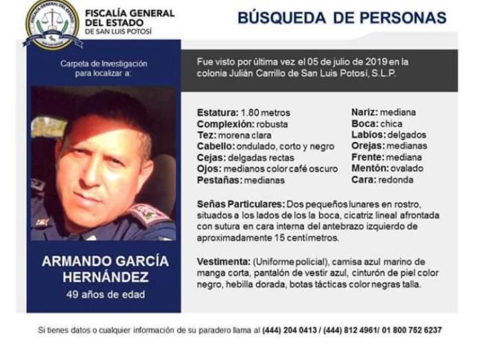 El pasado 5 de julio de este año, fue la última vez que vieron a Armando, quien pertenecía a la Policía Estatal, andaba en la colonia Julián Carrillo de la ciudad de San Luis Potosí, pero ya no regresó a su casa, ni se comunicó con sus familiares, por lo que se denunció su desaparición.