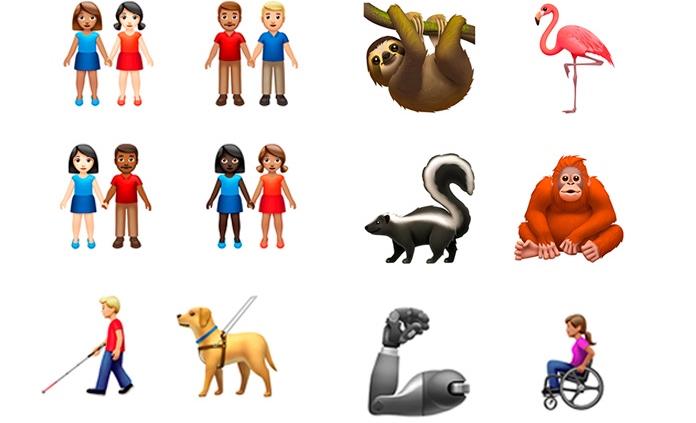 Apple Inc. lanzó nuevas variantes de sus emojis de manos, que permiten a la gente elegir cualquier combinación de tono de piel y género, en total 75 posibles combinaciones. También hay sillas de ruedas, prótesis de brazos y piernas, así como un nuevo perro guía y una oreja con audífono.