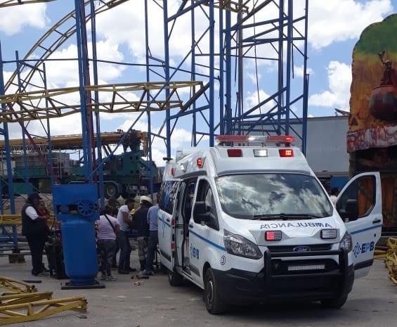 Compañeros y testigos de inmediato llamaron al 911 para pedir ana ambulancia, misma que trasladó al herido al Hospital Central, pues Atracciones García no proporciona seguridad social a sus trabajadores.