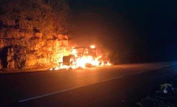 De acuerdo a los primeros reportes, el vehículo transportaba materiales pétreos y todo se quemó en su totalidad.