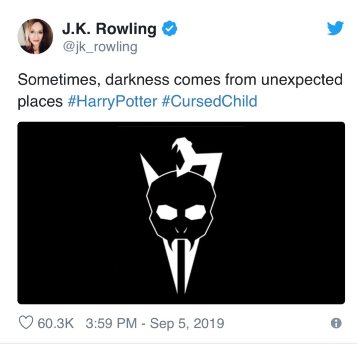 “A veces, la oscuridad proviene de lugares inesperados #HarryPotter #CursedChild”, se puede leer en un misterioso tuit publicado por Rowling.