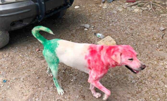 Un perro fue pintado por tres niños que son primos luego de tener la ocurrencia de usar las pinturas de la escuela con base de agua para ponerle los colores de la Bandera mexicana.