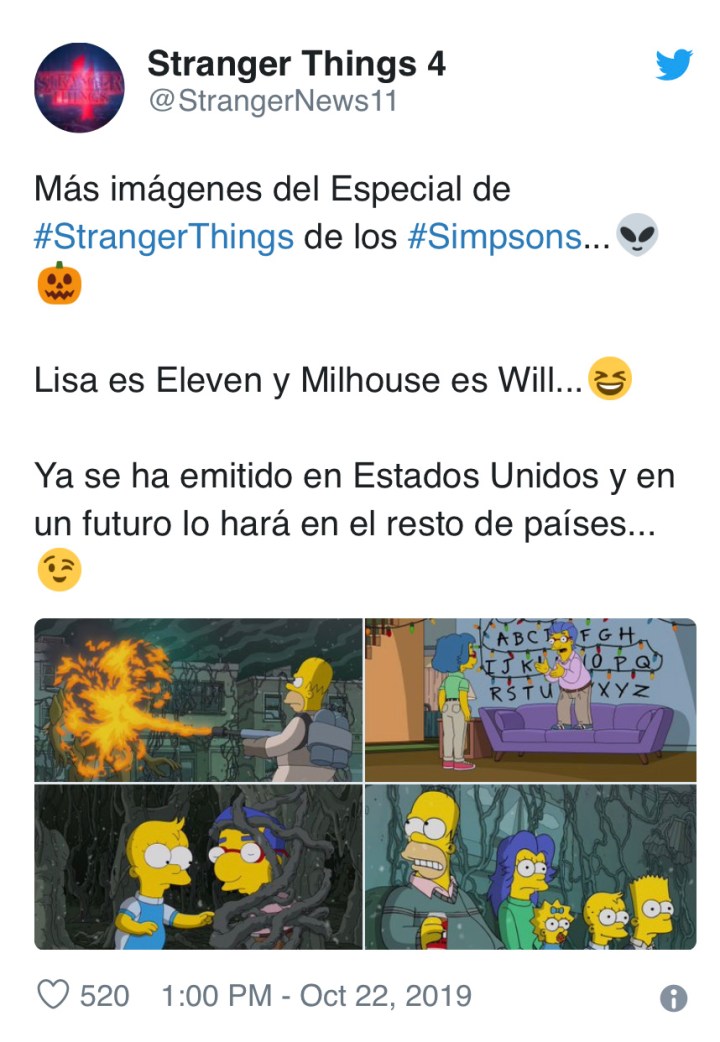 Los Simpson siguen con la tradición del especial de Halloween y esta vez el episodio 666 estará dedicado a Stranger Things. El capitulo llevará por título La Casa-Árbol del Terror y ahí Lisa aparecerá como Eleven la protagonista de la serie de Netflix.