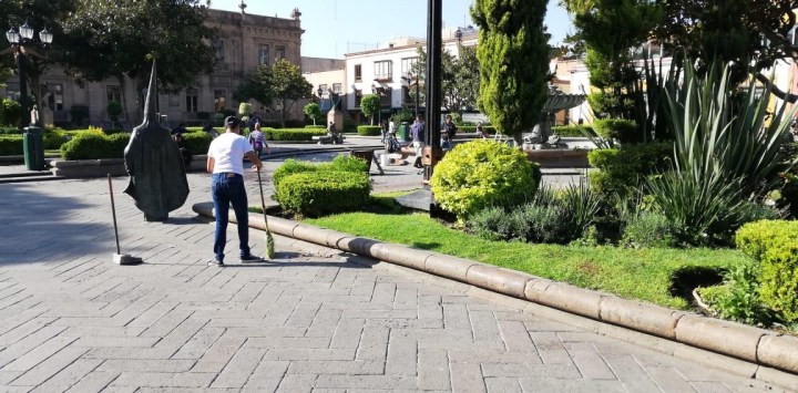 Cuadrillas de barrido manual en tres turnos intensificaron trabajos en 24 áreas del primer cuadro de la ciudad.