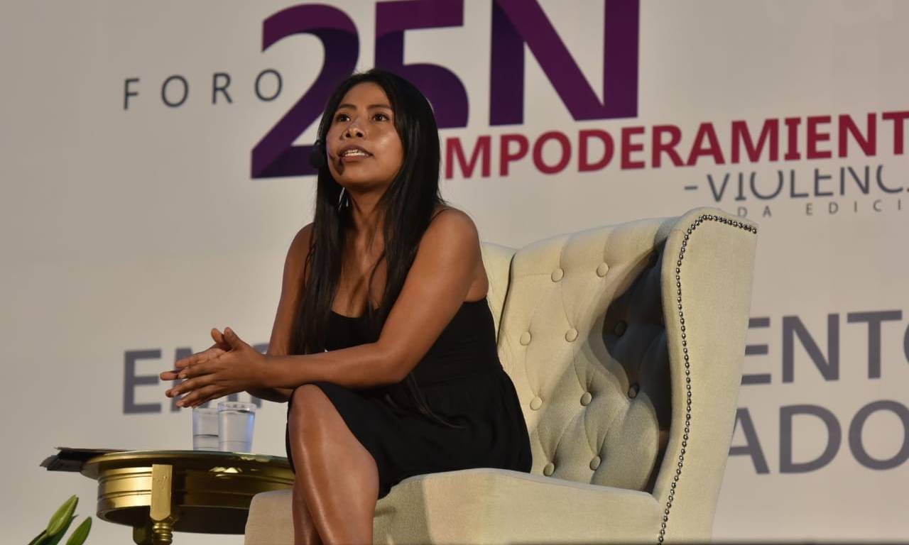 En el marco de las actividades que se impulsan desde el Gobierno del Estado por el Día Internacional de la Eliminación de la Violencia Contra las Mujeres, la actriz y activista Yalitza Aparicio ofreció una conferencia ante estudiantes, académicos, activistas y público sobre la importancia de los valores entre hombres y mujeres para fomentar el respeto a favor de la equidad entre géneros.
