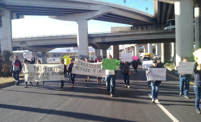 Los cerca de 50 inconformes expresaron su molestia por la decisión de cerrar esa institución y con pancartas y mantas avanzaron por la plataforma circular del distribuidor.