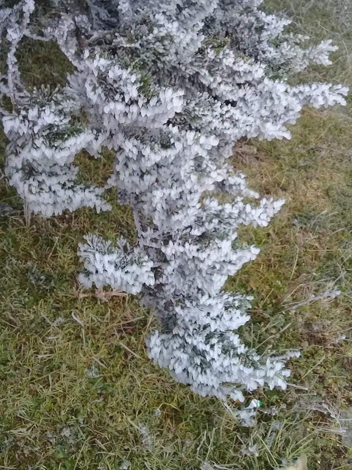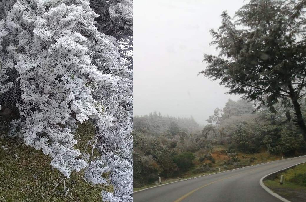 En el caso de las serranias también se registró temperaturas por debajo del cero, eso provocó en en regiones como la Sierra de Álvarez se registrará agua nieve que tiño de blanco toda la vegetación.