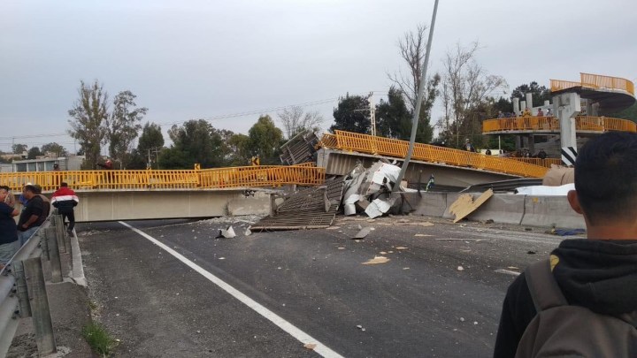 El derrumbe se produjo luego de que el puente fuera golpeado por un tráiler cuyo conductor perdió el control de la unidad y se subió al camellón para finalmente impactar la base de este.