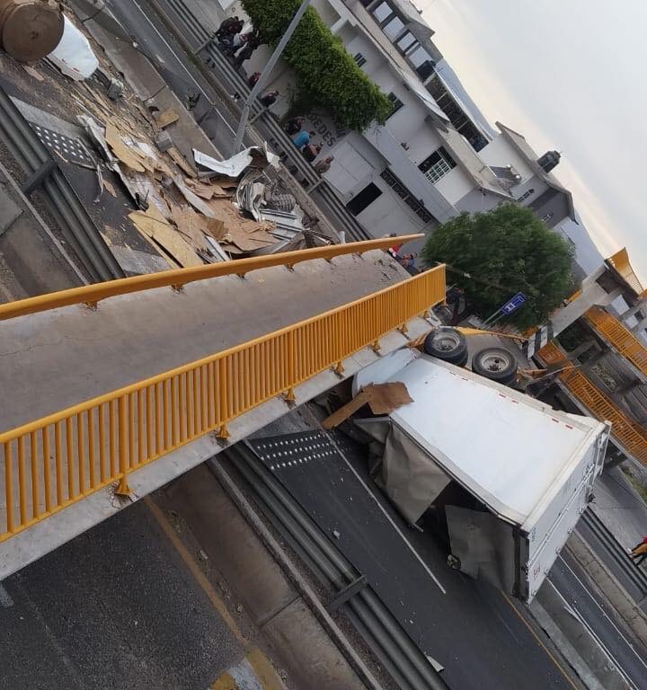 El derrumbe se produjo luego de que el puente fuera golpeado por un tráiler cuyo conductor perdió el control de la unidad y se subió al camellón para finalmente impactar la base de este.