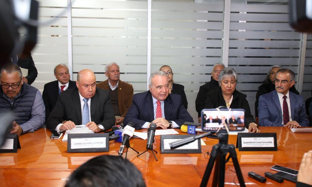 En conferencia de prensa en la que participaron integrantes del Congreso del Estado, las secciones 26 y 52 y el representante del Comité Ejecutivo Nacional del Sindicato Nacional de Trabajadores de la Educación, la Comisión Estatal de Derechos Humanos, la Asociación Estatal de Padres de Familia, la Federación de Escuelas Particulares de San Luis Potosí y el Sistema Educativo Estatal Regular, efectuada en las instalaciones de la SEGE, Ramírez Díaz expresó que desde el inicio de la Administración del Gobernador del Estado, Juan Manuel Carreras López, se implementó en San Luis Potosí la estrategia estatal de prevención “La seguridad escolar: compromiso de todos”, con la que se ha trabajado a través de las Asociaciones de Padres de Familia, los Consejos Escolares de Participación Social y específicamente con los Comités de Prevención y Seguridad Escolar, para llevar a cabo protocolos, como es la revisión de materiales y útiles escolares.