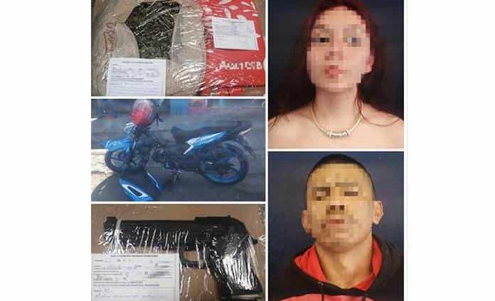 Ante los hechos, los agentes procedieron a realizar una inspección física de seguridad encontrado a la altura de la cintura de la fémina, una réplica de arma de fuego de material plástico, y al hombre se le encontró una bolsa de plástico la cual contenía en su interior 900 gramos aproximadamente de una hierba color verde, con las propiedades físicas de la marihuana.