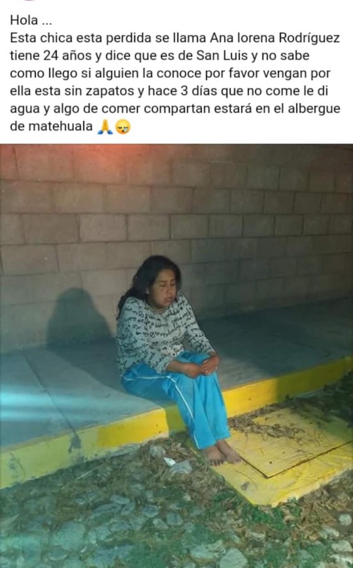Personal de la Policía Municipal de Matehuala, localizó a una mujer que tiene ficha de desaparecida en la ciudad de San Luis Potosí, deambulaba sin calzado en el lado sur de Matehuala, ya está bajo resguardo de la Policía.