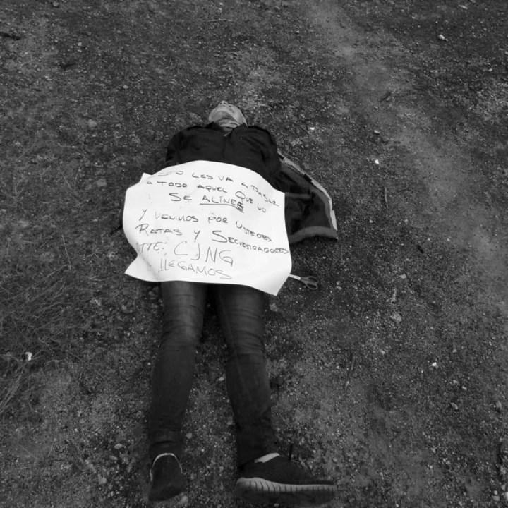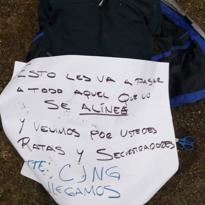 Trascendió la existencia de un mensaje que decía “esto les va a pasar a los que no se alinean y venimos por ustedes ratas y secuestradores” firmado por una organización de delincuencia organizada del Estado de Jalisco.