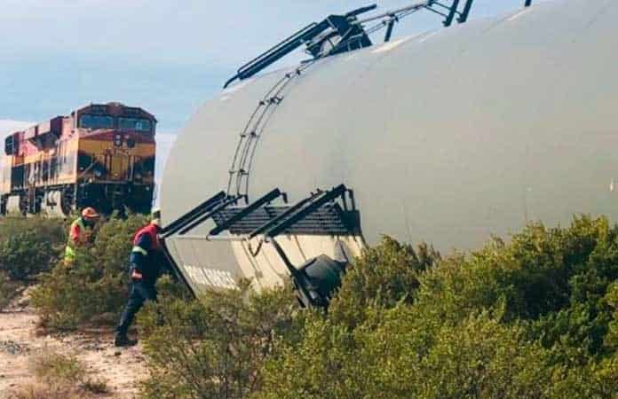 Hasta el momento se desconoce el motivo del descarrilamiento que provocó que varios vagones tipo cisterna quedaran sobre uno de sus costados.