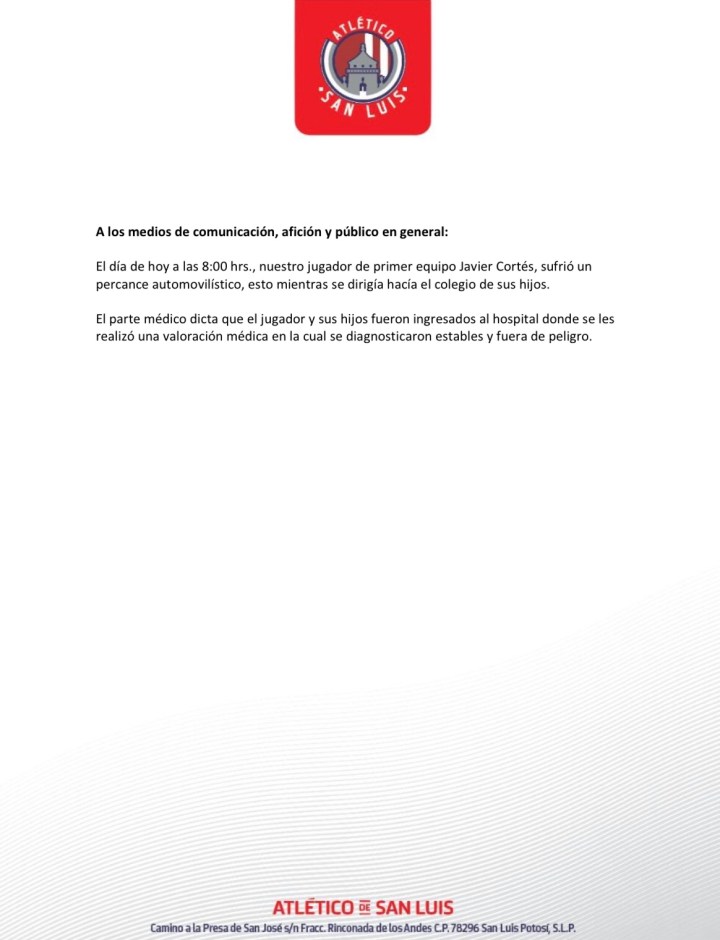 Cual es la sorpresa que nos encontramos que el conductor es Javier Cortés actual jugador de Atlético de San Luis, iba acompañado de su familia a los cuales trasladaron al Hospital Lomas por algunos daños físicos como rasguños y contusiones.