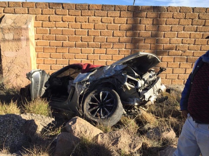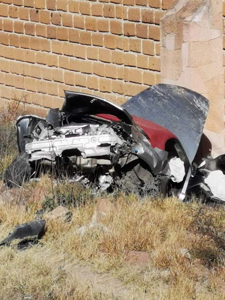 El vehículo salió de la curva volando casi a 20 metros por ir a exceso de velocidad y al querer frenar no lo consiguió lo que deriva en el choque y pérdida total del vehículo.