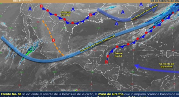 El frente frío número 39 se extenderá sobre el noroeste y norte del país, interaccionará con la novena tormenta invernal la cual se localizará sobre el noroeste de México y provocarán un descenso en la temperatura, lluvias fuertes y chubascos en dichas regiones, informó el Servicio Meteorológico Nacional (SMN).