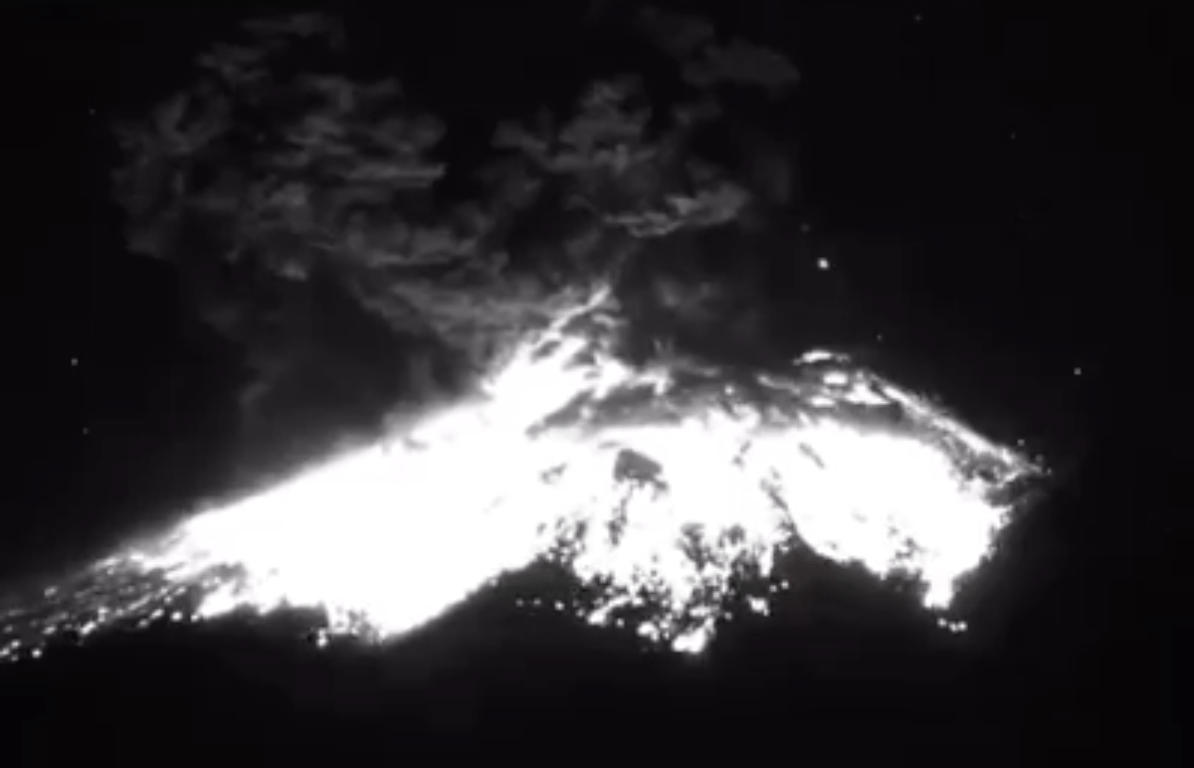 A las 00:16 h se registró moderada a fuerte explosión del #Popocatépetl con emisión de fragmentos incandescentes a más de 1 km del cráter.