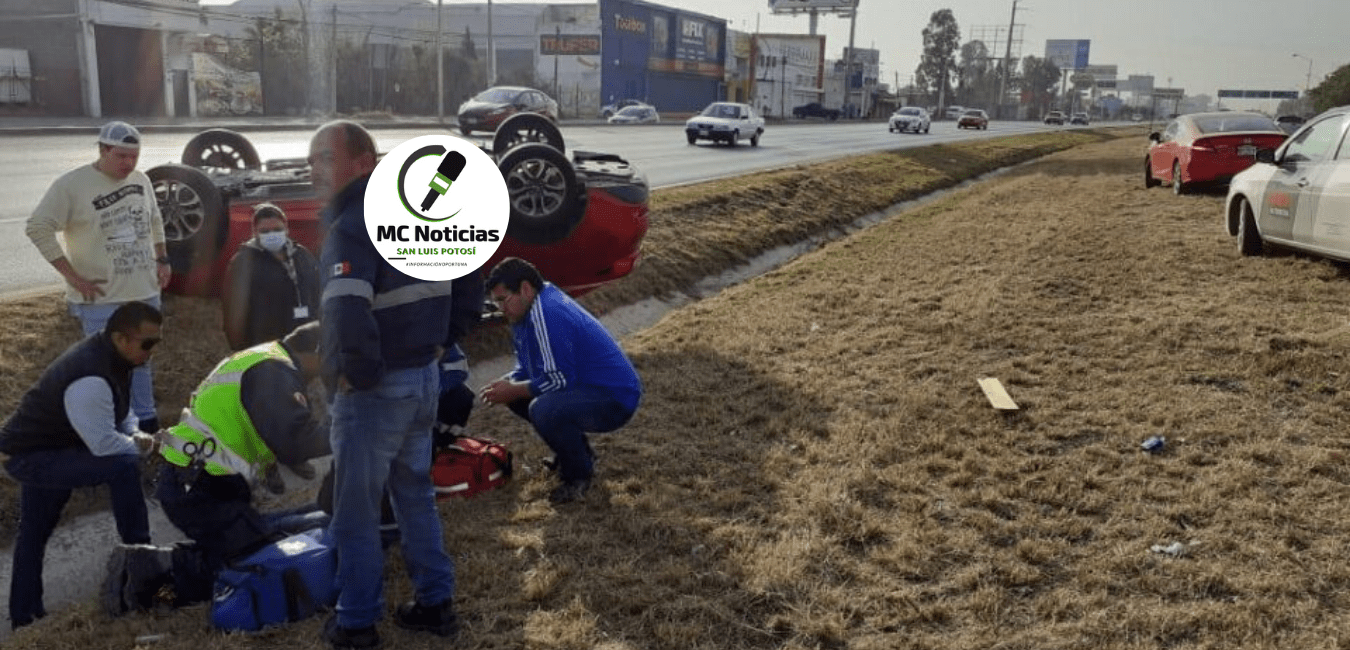 Esta mañana de Martes 25 de Febrero, se accidenta un vehículo a la altura de Villa de Pozos. El accidente es una volcadura quedando totalmente volteado el carro sobre los carriles centrales de la transitada carretera 57.