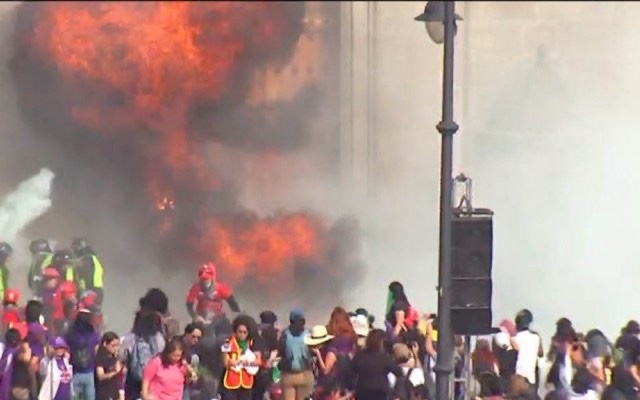 Manifestantes lanzaron varias bombas molotov a la puerta principal de Palacio Nacional, donde se generó un conato de incendio.