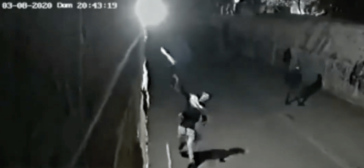 En el video se muestra como estas personas que no tienen ni oficio ni beneficio, están «jugando» tiro al blanco con piedras para atinar romper el foco, y tras muchos intentos al final lo logran.