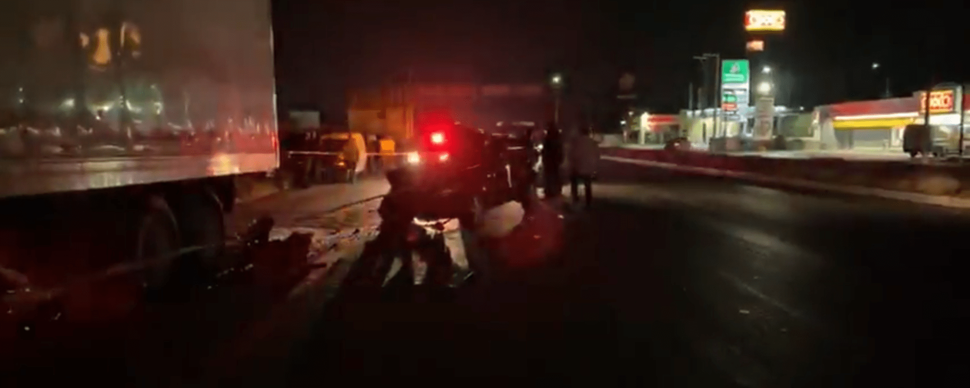 Esta noche se registra un choque bastante fuerte en la carretera a Matehuala en donde una camioneta color rojo marca Chevrolet se impacta contra un trailer y vuelca dejando desastre sobre la carretera.