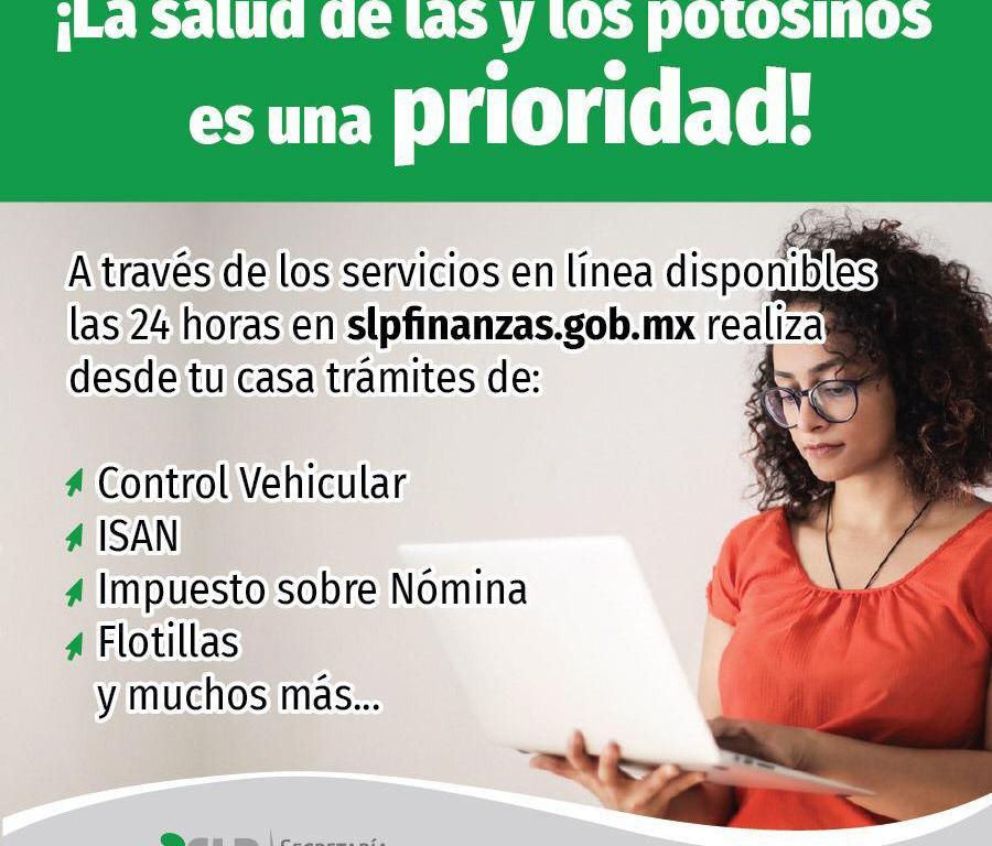 Como parte de las medidas preventivas para evitar contagios del COVID19, la Secretaría de Finanzas hace un llamado a la ciudadanía a utilizar los servicios y pagos en línea de forma segura, a través de la página www.slpfinanzas.gob.mx, bancos y centros electrónicos.